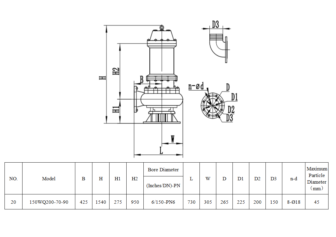 Submersible Sewage Pump 150WQ200-70-90 (200 m³/h, 70 m)